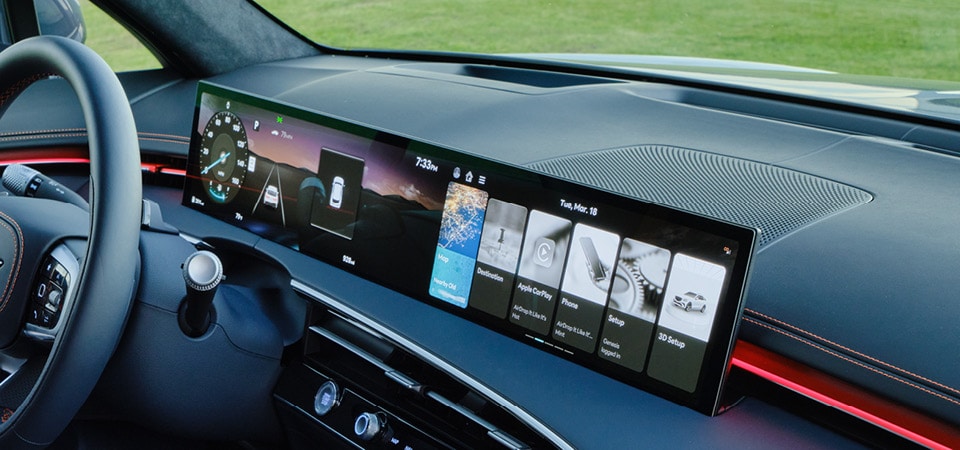 The centerpiece is the available 27-inch OLED display, which creates a seamless, high-end presentation across the dash by combining the instrument cluster and infotainment into one elegant panel. Add available Bang & Olufsen audio on higher trims, and the GV70 becomes less like "just a nice SUV" and more like a carefully tailored space built around comfort, focus, and premium detail.