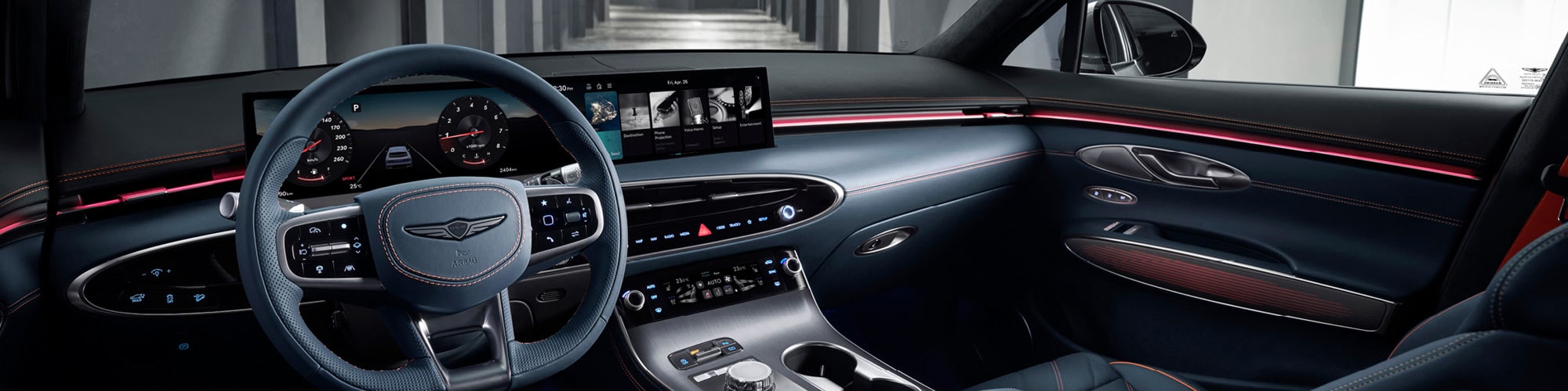 The Genesis GV70 arrives redesigned, bringing a noticeably more modern, elevated presence than the 2025 GV70. With refined signature design cues and a cabin that feels more contemporary and curated, including standard adjustable ambient lighting that enhances the interior atmosphere.